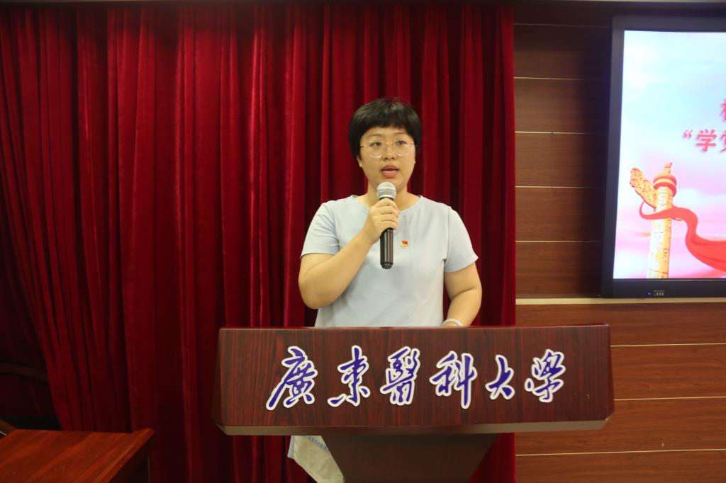 人事处党支部书记岑伟强、工会党支部书记杨海云代表机关党委青年干部做发言。岑伟强书记结合学校人才工作的总体规划,总结分享了在党史学习教育熏陶下人事人的初心、使命;杨海云书记则从自己入职广东医的第一天说起,与大家分享了与广东医同成长的故事和赤诚的爱校之情。