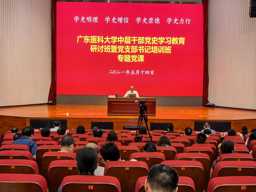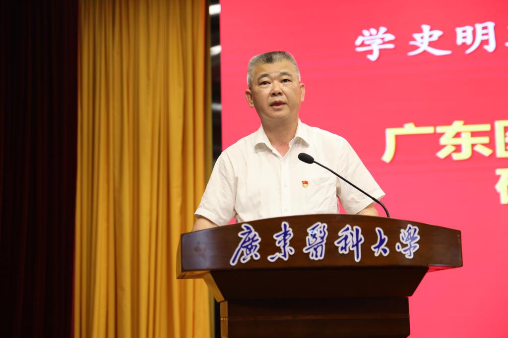 卢景辉书记、校长从“学党史,必须深刻认识党的性质宗旨;悟思想,必须感悟思想伟力,增强“四个意识”、坚定“四个自信”、做到“两个维护”;办实事,始终坚持以学生发展为中心,以人才强校为要务,为师生成长发展创造良好生态;开新局,以学校事业发展的新成就检验党史学习教育的实效,坚定不移走高质量发展之路”等四个方面作了深刻阐述。100分钟的精彩宣讲,主题鲜明、观点突出、内容扎实、深入浅出。卢景辉强调:学校处在医学发展最好的时代,我们要把握历史规律和大局,找出学校发展的空间,增强工作的系统性,抢抓发展机遇,坚定发展目标,一张蓝图绘到底,用扎扎实实的党史学习教育,推动学校高质量发展。