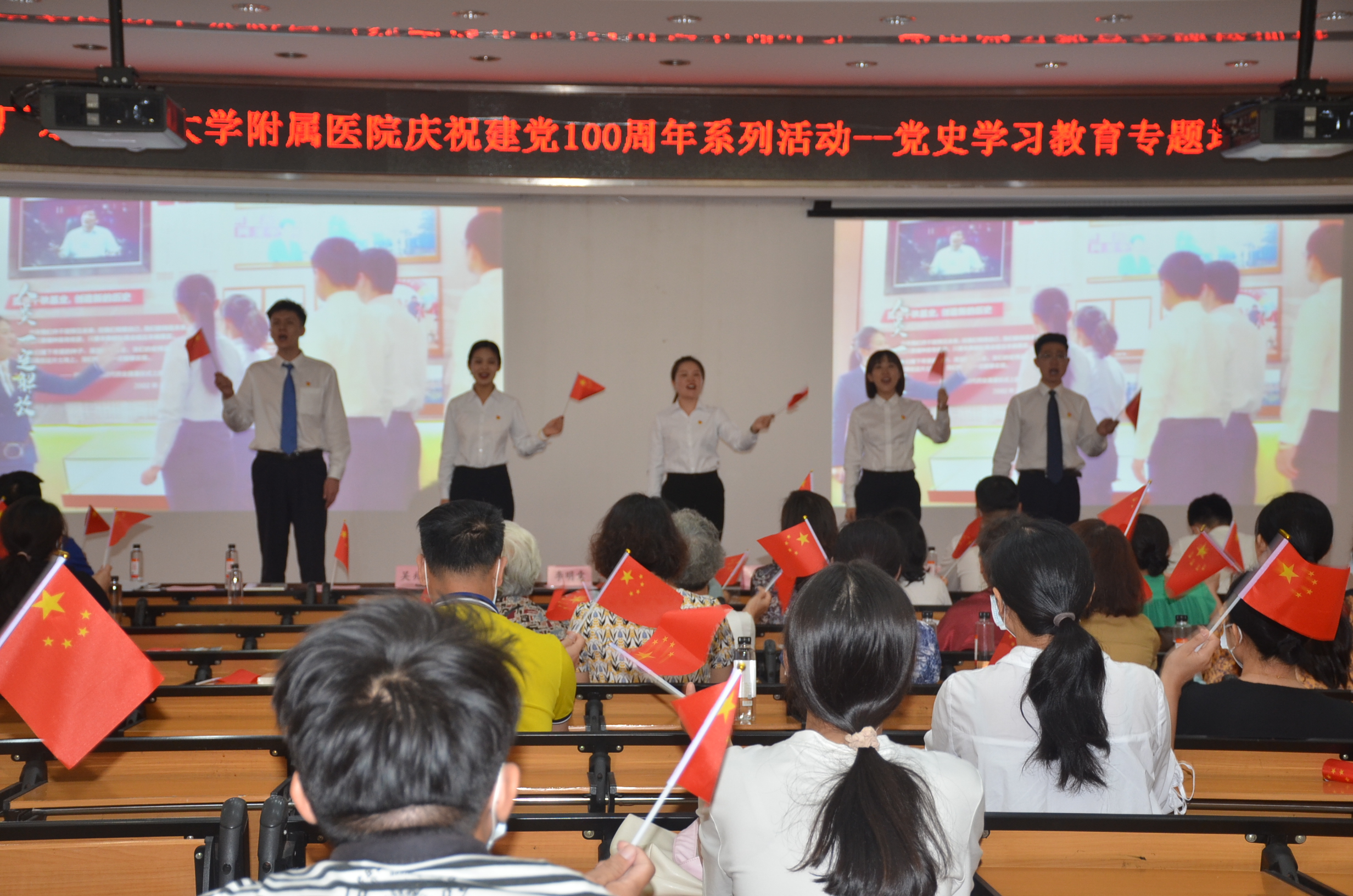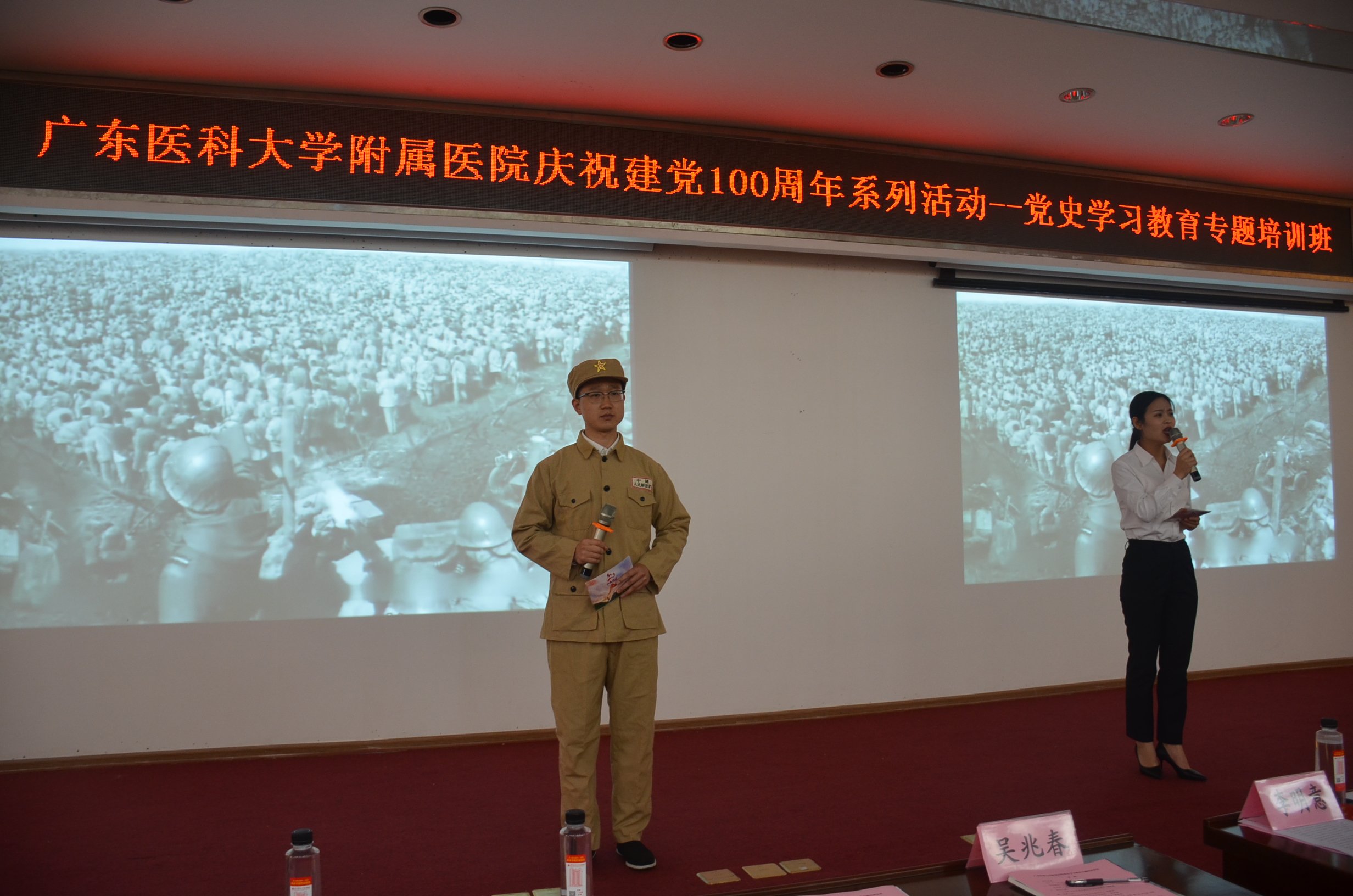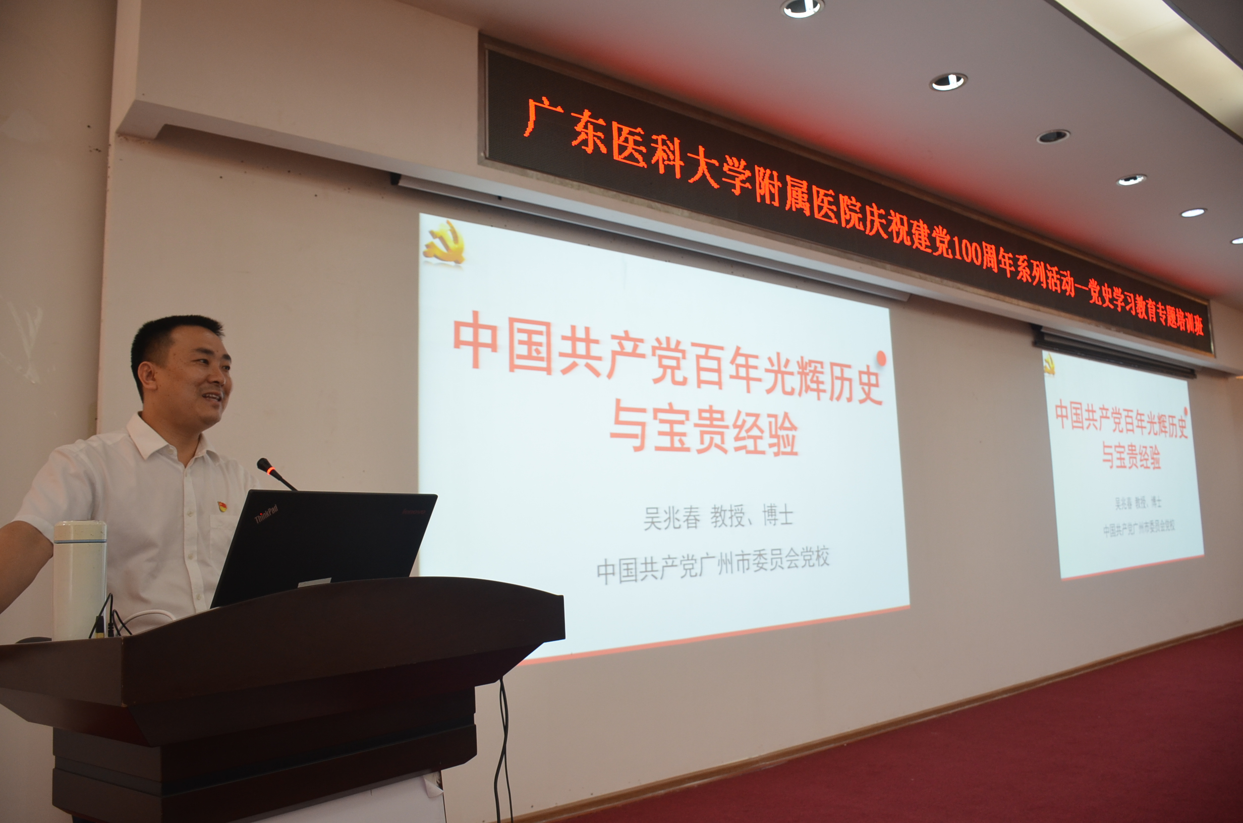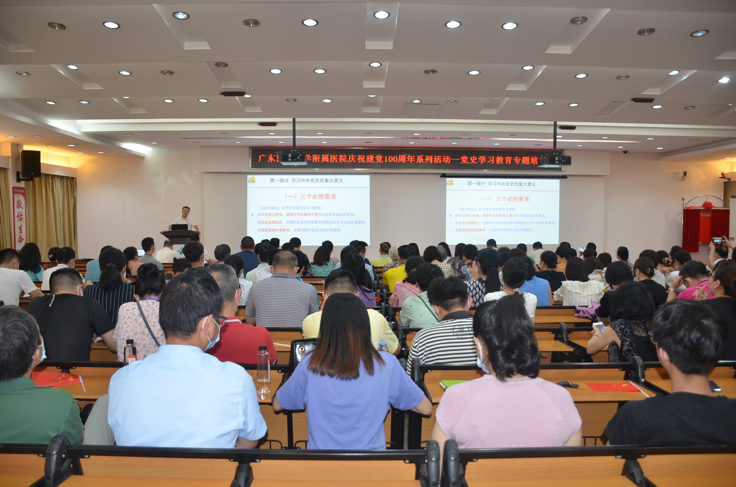 5月20日下午,新葡萄8883官网AMG附属医院与广东省医院协会联合举办了一场形式新颖、特色鲜明、入心入脑、入深入实的党史学习教育专题培训会。广东省医院协会副会长兼秘书长刘敏涓,中共广州市委党校经济学教授吴兆春、我院党委书记李明意出席了培训会。参加培训会的还有医院各党支部书记、中层干部、党员代表、入党积极分子、青年代表等共300余人。会议由医院党委组织部、统战部部长杨晓聪主持。