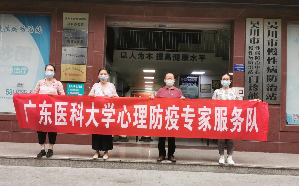 疫情当前,责任在肩。6月11日上午八点,学校接到上级部门邀请,请求派驻心理防疫专家对吴川隔离点群众进行心理辅导,为吴川百姓筑牢“心理防线”。学校收到邀请即刻组建心理防疫专家服务队,由人文与管理学院副院长谭健烽带队,心理系主任褚成静博士、心理学系孙小媛博士、王丹丹老师组成的心理防疫专家服务队,简单收拾行李,完成核酸检测等准备工作,两个小时后就带着防疫物资出发,奔赴吴川。四位队员中有两名中共党员,一名农工民主党员,一名群众,他们齐聚党旗下,守护“心健康”。