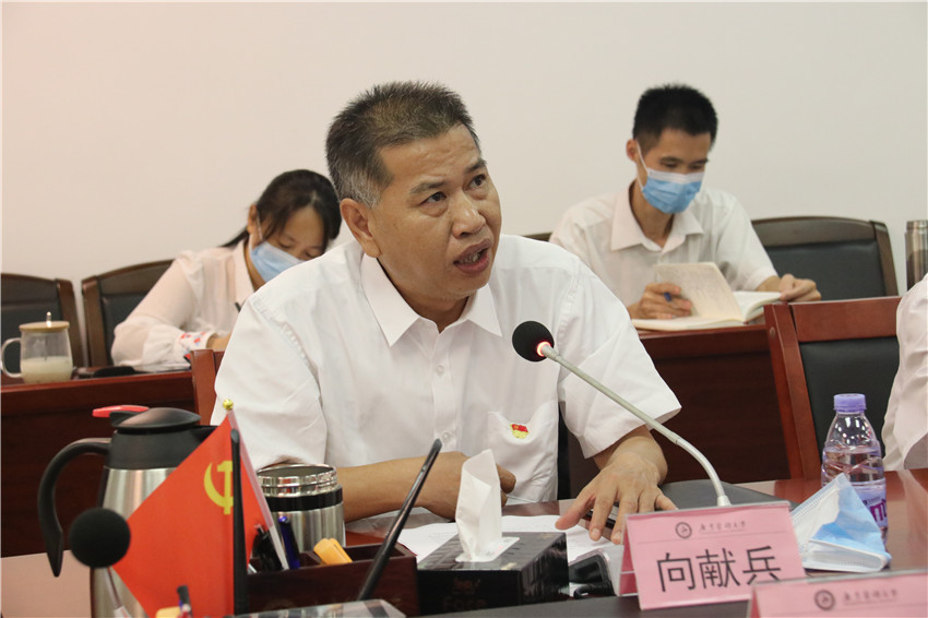 广东省监委驻新葡萄8883官网AMG监察专员,党委副书记、纪委书记向献兵从“全面从严治党、勇于自我革命是我们党百年奋斗锤炼出的最鲜明品格”谈了自己的感想。向献兵表示,将紧紧围绕高水平医科大学建设大局发挥监督保障执行、促进完善发展作用,以全面从严治党的新成效,为学校构建新发展格局、全面建成高水平医科大学提供坚强的纪律保障。