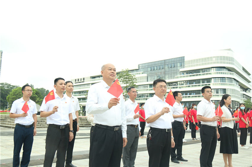 奋斗百年路 启航新征程。为庆祝中国共产党成立100周年,进一步增强全体党员的爱党爱国热情,引导广大党员师生坚定理想信念、筑牢初心使命、凝聚磅礴力量,7月1日早晨7时,学校在两校区举行了“七.一”升旗仪式,全体校领导、相关职能部门负责人和师生党员代表参加仪式。