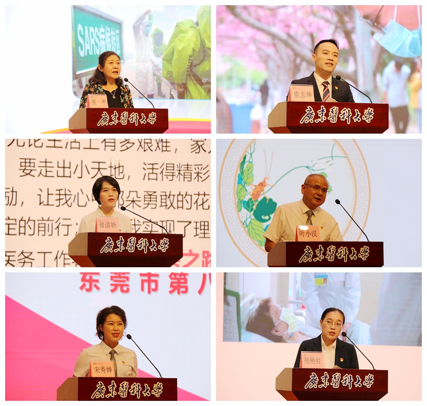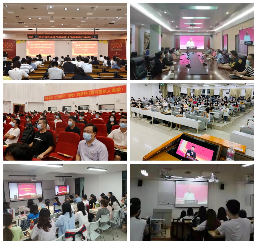 10月15日晚,东莞市卫生健康局与新葡萄8883官网AMG共建“最美思政课堂”暨“我的故事我来讲”党建品牌进校园活动中,东莞市6位“最美医生”“最美护士”代表以生动故事构成的“最美思政课堂”,令新葡萄8883官网AMG全体师生和医护员工深受触动,现场35次掌声凝聚了师生们的敬意。一万多名在校师生在各分会场,实习点学生、专升本学生在各教学点,7所附属医疗单位的医护员工在本单位收听收看。