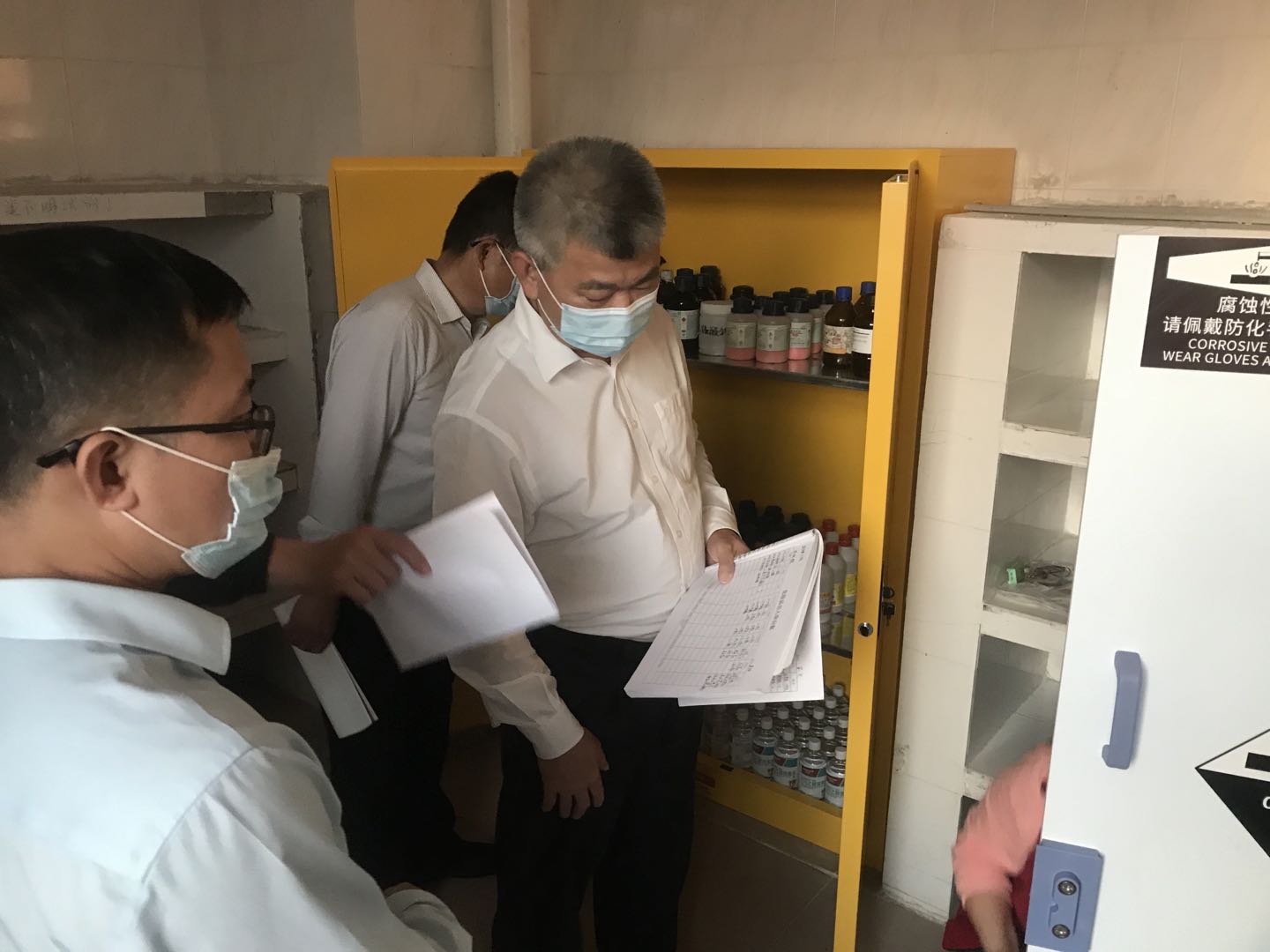 罗辉副书记带领检查组一行先后到化学实验室、分析中心、生化实验室、校级危险品仓库等现场检查;刘新光副校长一行分别检查了化学楼药学院科研实验室、科研平台各研究所、科研共享危险品仓库等实验场所进行检查。开学以来,各单位高度重视实验室安全工作,针对实验室安全排查和整改做了大量工作,但仍存在一些问题。此次检查发现,存在危险品使用登记台帐不全、实验室废弃物堆积较多,高压气体存放不规范、实验台面试剂物品杂多、特种设备培训偏少、实验室仪器设备共享度低、设备使用登记台帐需完善等安全隐患问题。