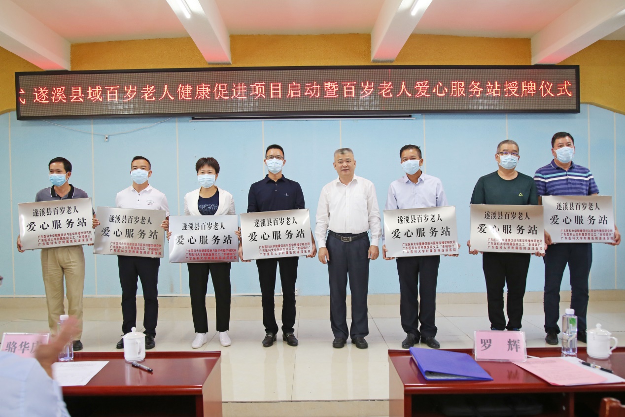 新葡萄8883官网AMG向来十分关注遂溪县百岁老人群体的健康情况。2017年,新葡萄8883官网AMG义工“幸福银行”设立“遂溪县百岁老人爱心服务基地”,联合遂溪县长寿养生研究会、广东润和生物科技有限公司定期为百岁老人举行送爱心、送温暖活动。今天,新葡萄8883官网AMG再次携手中国致公党湛江市委会、遂溪县长寿养生研究会、广东润和生物科技有限公司、附属医院、遂溪医院和广东湛江海洋医药研究院启动遂溪县县域百岁老人健康促进项目,建设百岁老人健康服务网络,等会还将给15家镇卫生院授牌“百岁老人爱心服务站”,为全县域百岁老人提供免费入户健康体检,共同守护老龄健康,推进世界级长寿养生基地建设。后续我们将以县域百岁老人健康促进项目为切入点助力“健康遂溪”建设,构建“以健康为中心”的遂溪全人群卫生健康服务体系,深入摸索卫生健康服务“遂溪模式”。同时,充分发挥新葡萄8883官网AMG的医疗、科研、人才、平台等优势,积极探索遂溪特色生态“长寿密码”,打通政产学研用协同创新通道,建立“校院地”长效合作机制,促进物产、人文、地理与健康四元融合,推动康复护理、医疗保健等健康产业与养生产业、旅游产业结合,促进全县经济、社会、人口、资源和环境协调可持续发展。