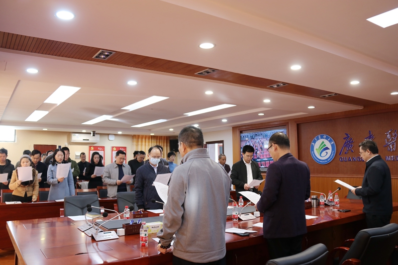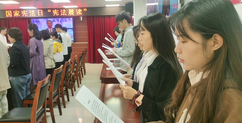 “中华人民共和国实行依法治国,建设社会主义法治国家。”12月3日上午,新葡萄8883官网AMG两校区第一会议室传出了整齐划一的诵读声。