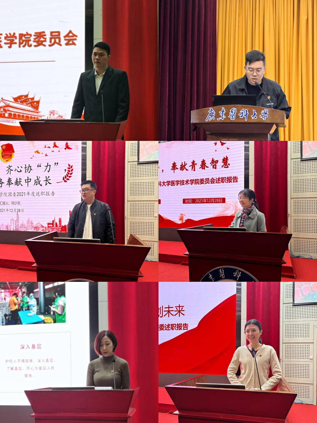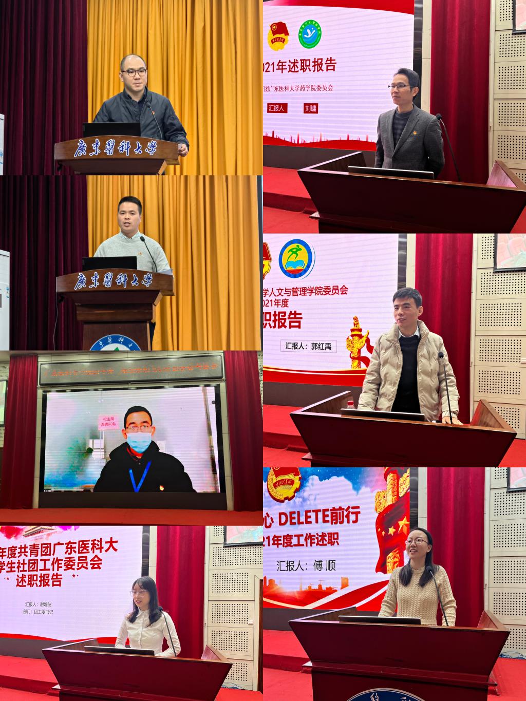 随后,13个二级团组织书记对2021年共青团工作开展情况进行述职,述职过程既注重关键指标完成情况的报告,又注重团组织凝聚力和影响力的展现。2021年是中国共产党成立100周年,在学院党委的指导和学校团委的带领下,各级团组织紧紧围绕“党史学习教育”的主线,强化引领力,提升组织力,聚焦服务力,加大贡献度,通过多元的形式让青年“学党史、听党话、跟党走”。