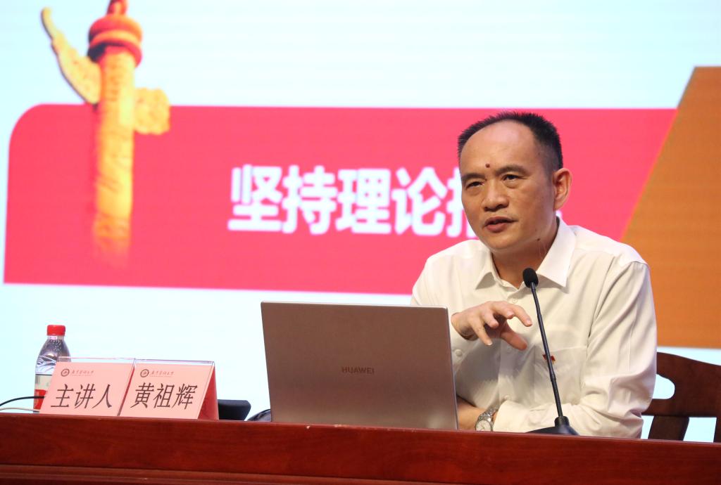 马克思主义学院党总支书记、院长黄祖辉以《坚定党的历史自信,走好新的赶考之路》为题作辅导报告,从坚定历史自信的重大意义、中国共产党历史自信的历史依据、坚定历史自信的实践要求等方面结合个人工作实际谈了学习体会。