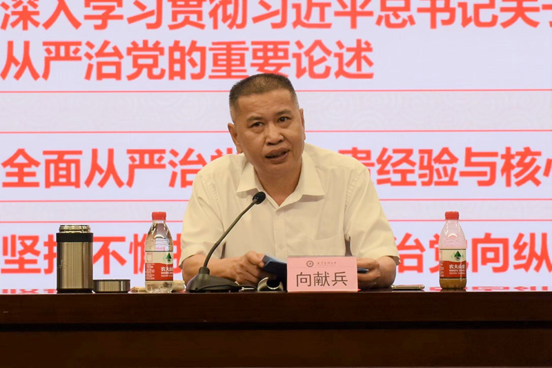 学校党委副书记、纪委书记,广东省监委驻新葡萄8883官网AMG监察专员向献兵作了题为《坚持不懈把全面从严治党向纵深推进》的辅导讲座。报告内容从新时代全面从严治党成效卓著、深入学习贯彻习近平总书记关于全面从严治党的重要论述、全面从严治党的宝贵经验与核心要义、坚持不懈把全面从严治党向纵深推进等四个方面谈了学习体会。他强调,踏上新的赶考路,全面从严治党责任与使命,比过去要更加艰巨。我们要忠诚拥护“两个确立”,坚决做到“两个维护”,继续发扬历史主动精神,永葆自我革命精神,深入贯彻全面从严治党战略方针,以永远在路上的坚定执着,继续打好全面从严治党、党风廉政建设和反腐败斗争攻坚战持久战,推动全面从严治党乘势而上、再接再厉,以全面从严治党的新成效迎接党的二十大胜利召开。