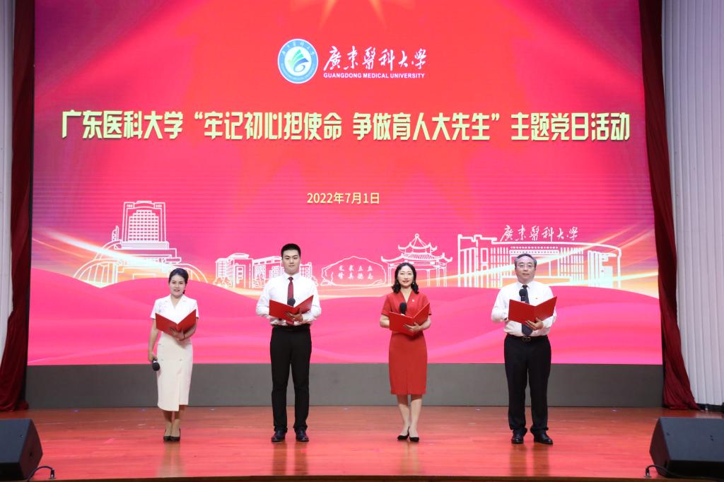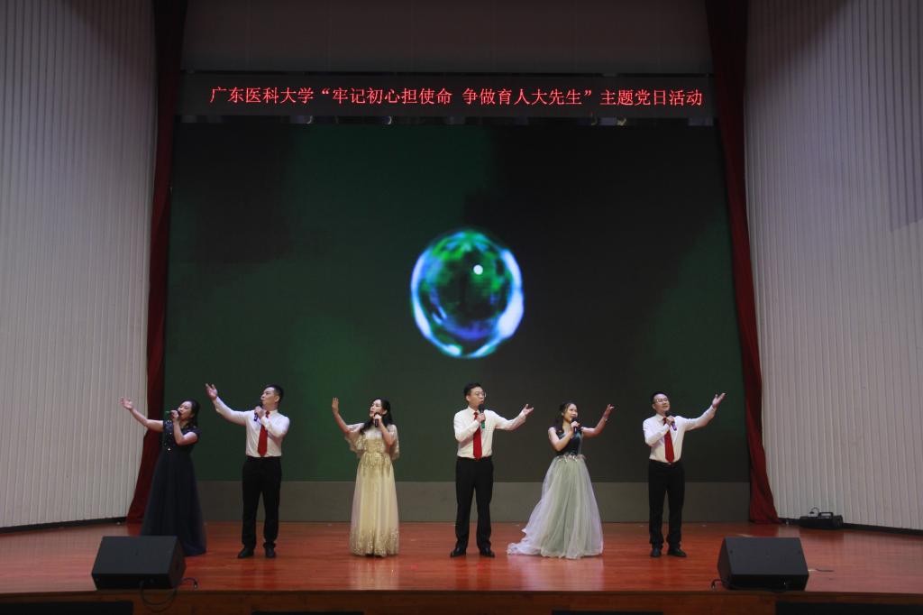 赓续红色血脉,传承广东医精神。在学校64年的办学历程中,一代一代的广东医人,坚守为党育人为国育才的初心和使命,在岁月的年轮中,书写执着,书写奋斗,书写开拓。师生代表用《火红党旗映初心,三尺讲台万里情》主题表演,深情表达了对一代代广东医人言传身教、教书育人、悬壶济世、救死扶伤等精神的讴歌和敬意,感动了参加活动的人员,也激励大家踔厉奋发,再创辉煌的坚强决心。