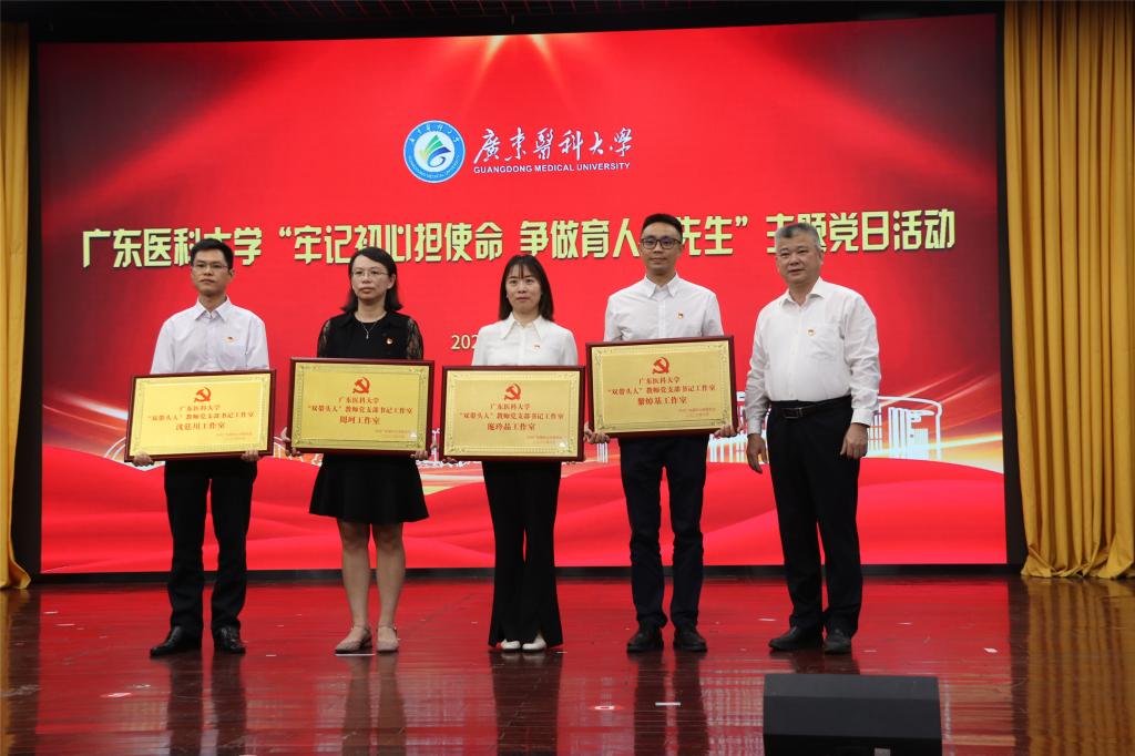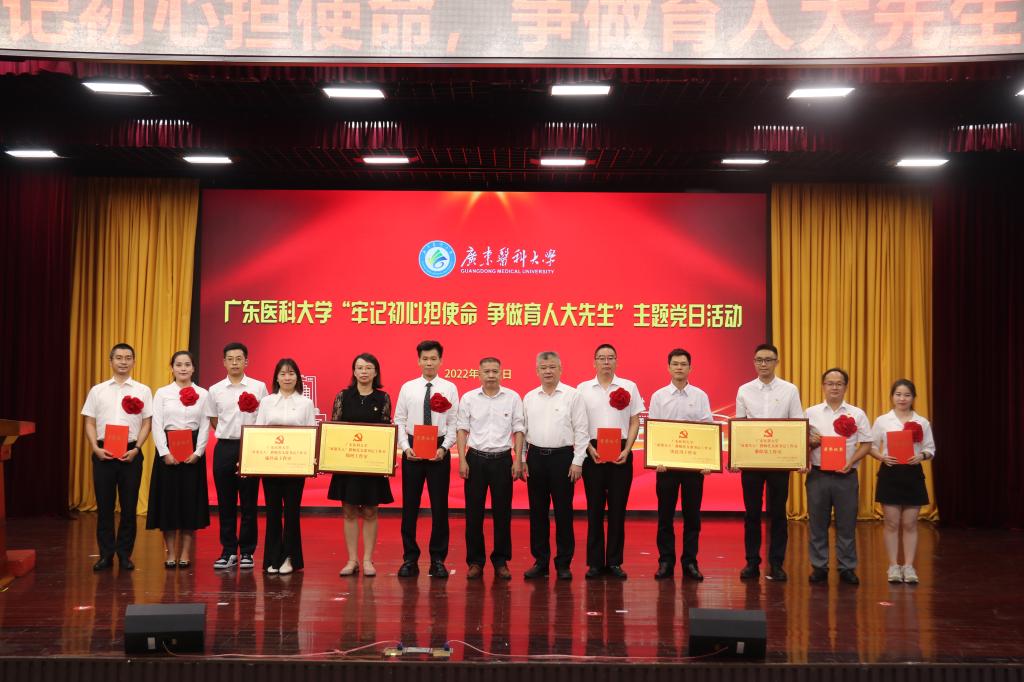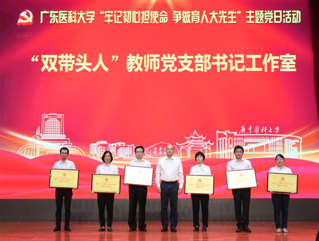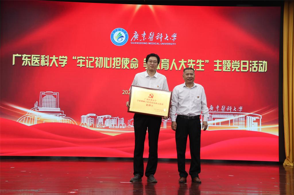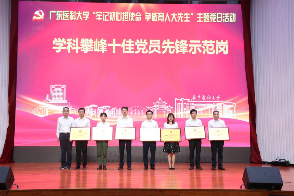 学校党委副书记、纪委书记、广东省监委驻新葡萄8883官网AMG监察专员向献兵宣读了表彰文件。校领导为学科攀峰十佳党员先锋示范岗和第二批校级“双带头人”教师党支部书记工作室授牌,为新葡萄8883官网AMG抗击新冠肺炎疫情党员先锋颁发荣誉证书。附属东莞第一医院院长邵义明、医学技术学院副院长张华、第一临床医学院学生党员欧阳欣悦同学作为师生党员代表发言。