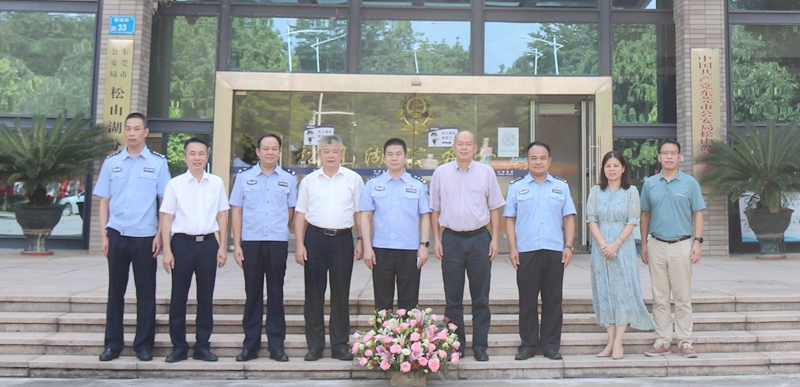 7月11日下午,卢景辉书记校长、罗辉副书记一行来到东莞市松山湖公安分局,同松山湖党工委委员、公安分局局长杜志坚、分局副局长彭润华等座谈交流。