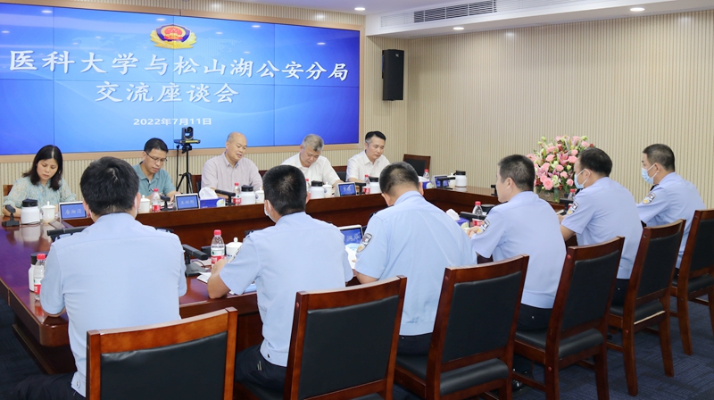 松山湖公安分局指挥中心主任何朗、国保大队大队长张志文、红棉派出所所长李容根、红棉派出所广东医警务室警长叶畅聪,学校党办主任王辉群、安保部部长陈凯、学工部部长唐湘涓等一同参加座谈。(文、图/党委宣传部 编/周圆 审/冯锦山)