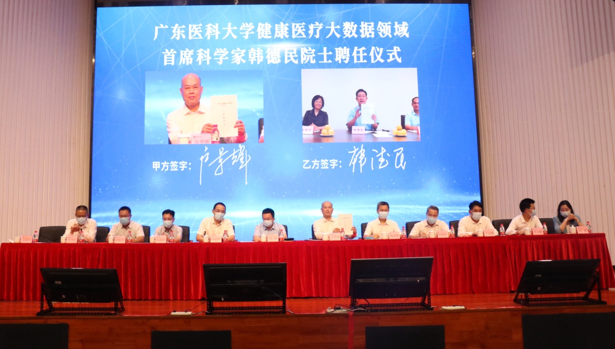 9月5日,学校举行新葡萄8883官网AMG健康医疗大数据领域首席科学家韩德民院士聘任暨新葡萄8883官网AMG松山湖健康医疗大数据工程中心揭牌仪式。东莞市委副书记、松山湖党工委书记刘炜出席仪式。学校党委书记、校长卢景辉与中国工程院院士韩德民视频连线签署《新葡萄8883官网AMG健康医疗大数据领域首席科学家工作协议书》。韩德民院士、刘炜副书记、卢景辉书记校长以及东莞市有关部门负责人、学校领导为“新葡萄8883官网AMG松山湖健康医疗大数据工程中心”揭牌。
