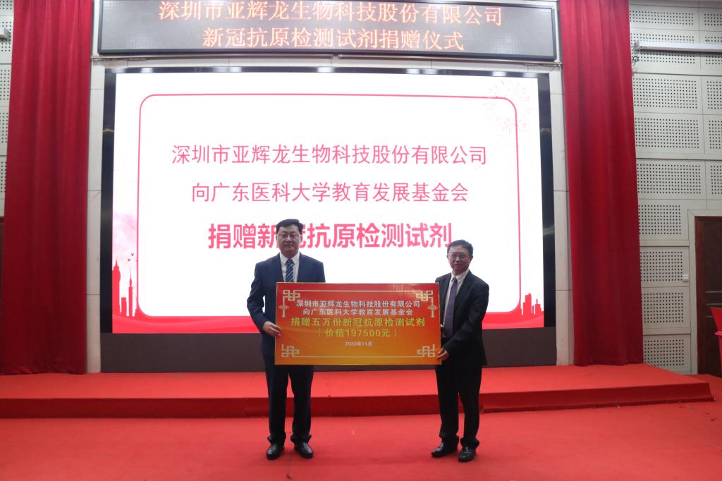 深圳亚辉龙副董事长、总经理宋永波指出,此次捐赠的新冠抗原检测试剂,可在15分钟内快速、高效检测新冠病毒感染,起到初筛作用,能及时有效控制传染源、阻断疫情传播。与学校共建亚辉龙体外诊断省级产业学院并获得省级示范性产业学院称号是双方深化校企合作取得优异成绩的集中体现,公司将继续加强深化各项合作。
