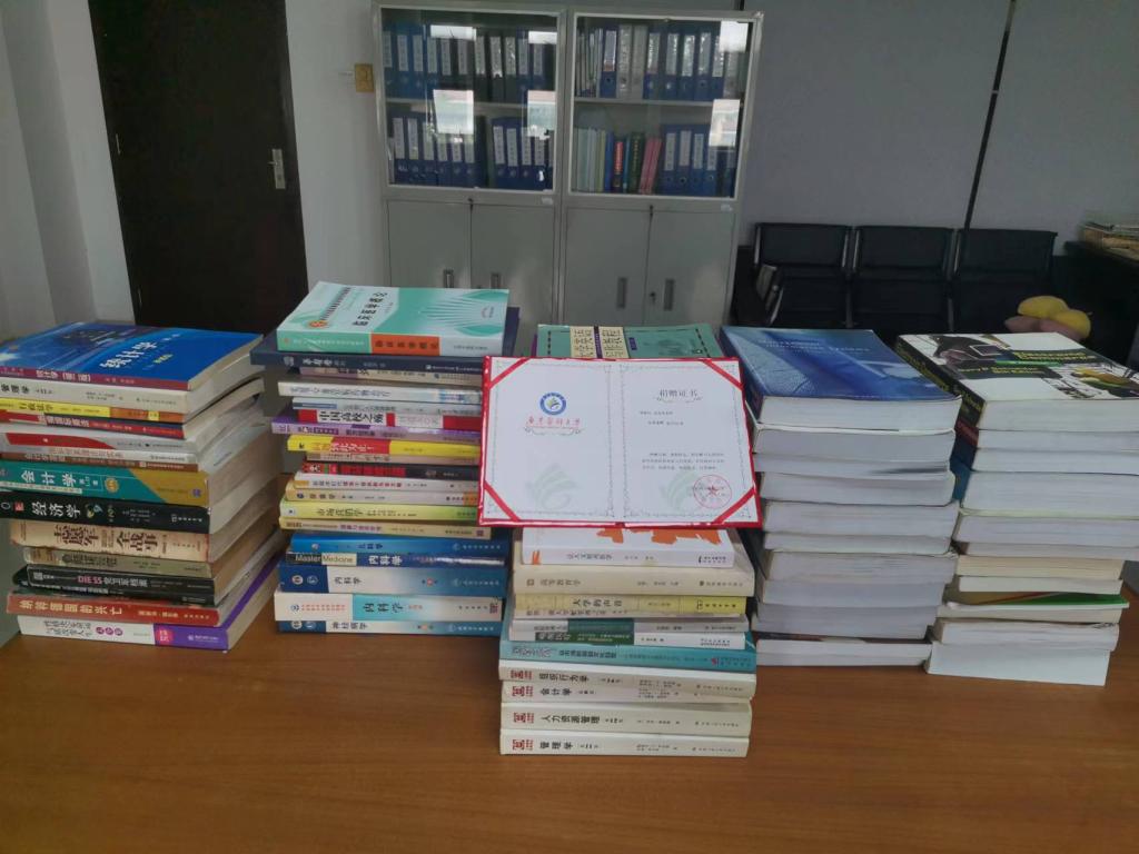 金秋送爽,书香致远,从学校印刷厂退休的苏海华老师将家里的一批藏书捐赠给学校图书馆。苏老师淡泊名利,但对书情有独钟,我们惊讶地发现,苏老师所捐的每一本书都有他的亲笔签名、标注购书的时间与地点,并盖有自己的藏书专用章,体现了苏老师非常重视书籍的收藏及严谨的治学态度。苏老师非常勤奋好学,咬定目标不放松。他参加工作的时候是初中学历,在新葡萄8883官网AMG这个充满书香的校园里工作、生活,激励着他以惊人的毅力自学修完法学专业课程,通过参加国家自学考试获得法学专科文凭,再通过自学学习律师资格考试科目课程,退休前考取了律师资格证,退休后就活跃在粤西的律师界,而且在做律师的同时继续通过参加自学考试获得法学本科文凭。苏老师孜孜不倦、永不停步的学习精神值得我们学习。