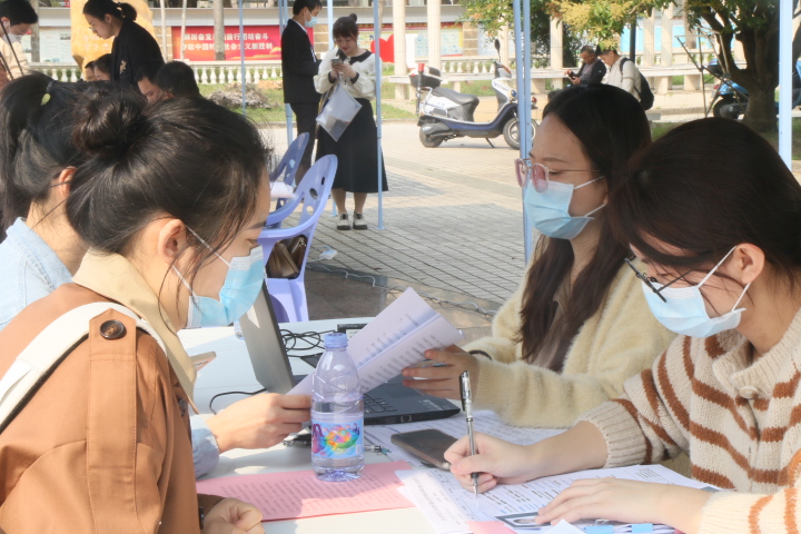 本次校园专场招聘会吸引了众多校内外、不同地区和学校的应聘者。有来自安徽医科大学、广西中医药大学等省外院校的应届毕业生从广东省人社厅官网了解到招聘会信息,特意来到湛江校区,希望在这里找到适合自己的工作岗位。