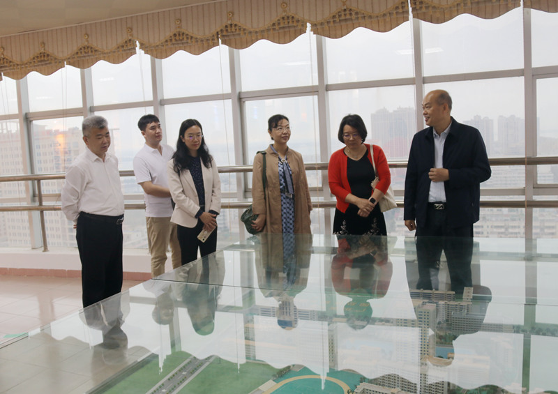 会前,来访一行先到校史馆参观,卢景辉对学校发展历史作了介绍。