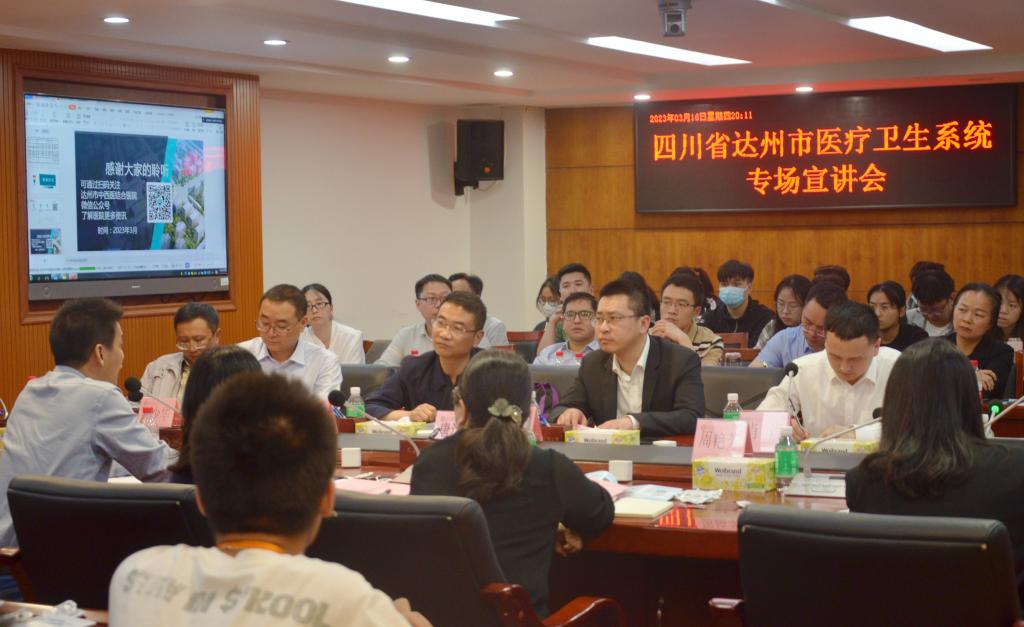 唐湘涓处长代表学校对四川省达州市卫生健康委员会一行的到来表示热烈欢迎。学校高度重视本次专场宣讲会,希望能够增进双方的了解,很好地发挥地方政府的优势,为新葡萄毕业生提供更好的就业机会,同时,学校也将适应社会需要,为地方医疗卫生事业的发展培养更优秀的人才。