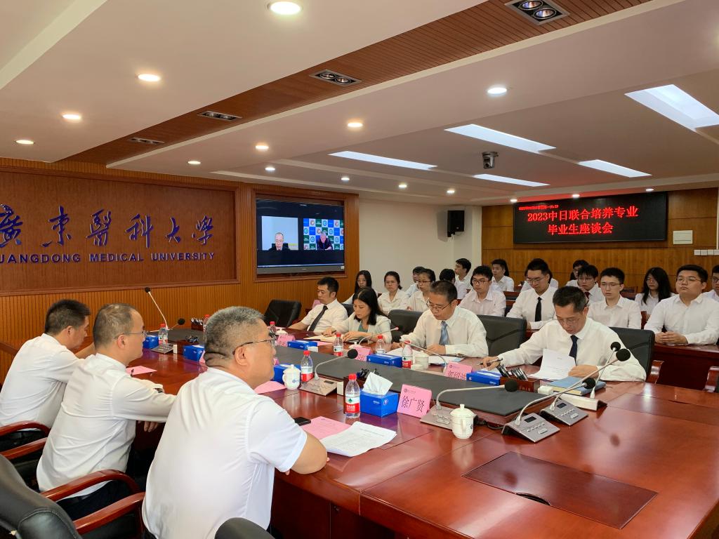 6月19日下午,2023届中日联合培养专业毕业生座谈会,以线上线下相结合的方式在东莞校区第一会议室举行。日本大阪滋庆学园常务理事桥本胜信先生、国际教育事业部中国中心长刘伟先生,学校邝卫红副校长、相关职能部门负责人、联合培养专业所在学院领导、教师代表、毕业班辅导员以及40余名毕业生代表共同出席了座谈会。