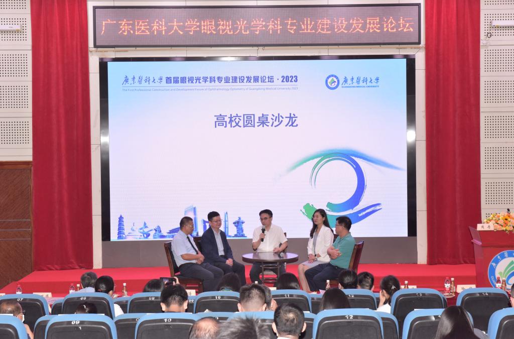 当日,中山大学眼科中心副院长卓业鸿、温州医科大学眼视光学院执行院长陈浩、天津医科大学眼视光学院教学办公室主任李静、新葡萄8883官网AMG附属东莞第一医院眼科医学中心主任周丹、新葡萄8883官网AMG附属第二医院眼科医学中心主任叶亲颖还以圆桌沙龙形式,围绕眼视光专业发展,结合主题报告内容,就落实近防措施、近视防控创新机制及新时期眼视光医学教育创新发展、眼视光医学专业教育培养和课程体系建设等方面进行了交流和探讨。