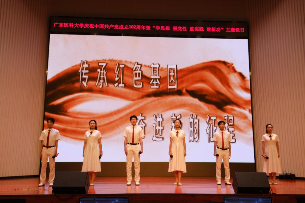 “请党放心,强国有我!”,学生党员代表朗诵《传承红色基因 奋进新的征程》,以青春的名义致敬生机勃发的青春中国,许下“坚定理想信念坚定不移听党话跟党走”的青春誓言。