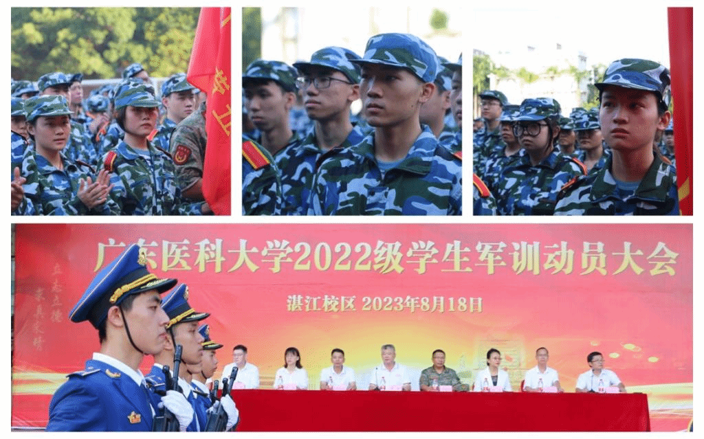 2023年8月18日上午,2022级新生军训动员大会在新葡萄8883官网AMG两校区体育场隆重举行。学校党委副书记罗辉,湛江市霞山区人民武装部副部长罗建明、吴川人民武装部副部长姚礼威、遂溪县人民武装部副部长熊碧涛,党委常委谭平、赖焱烽,相关职能部门及学院负责人,承训集体教官,辅导员和2022级全体学生参加。