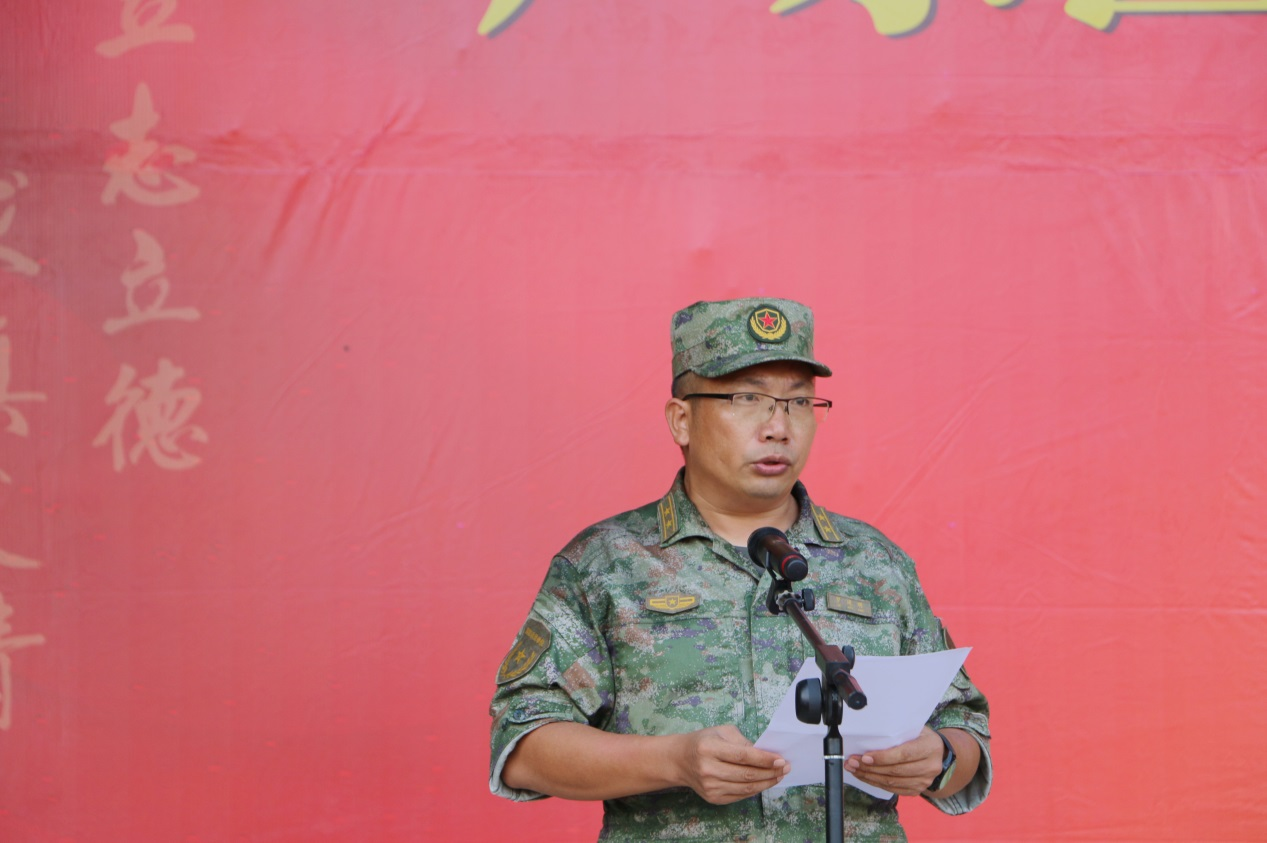 罗建明、姚礼威分别作了发言,希望同学们在思想上要高度重视,把自己当成一名真正的军人来看待,以军人的身份严格要求自己,自觉接受人生的这一挑战。要严守纪律,坚决服从安排听指挥。要发扬革命前辈吃苦耐劳精神,高标准严要求。要尊敬教官,有事先报告,服从统一安排部署。要有集体荣誉感,加强团队意识。同时他们也代表教官表达坚决完成任务的决心。