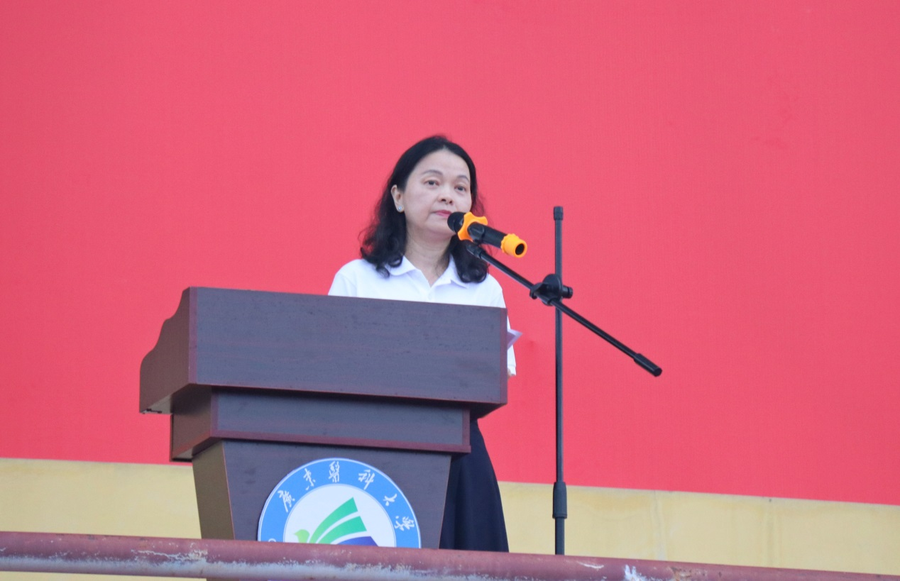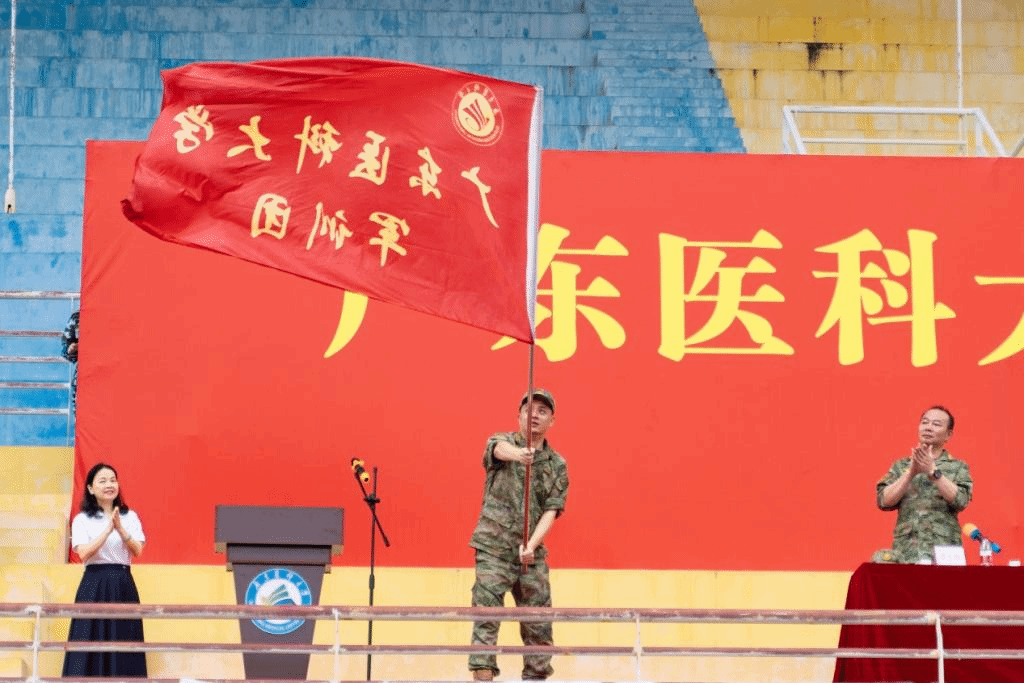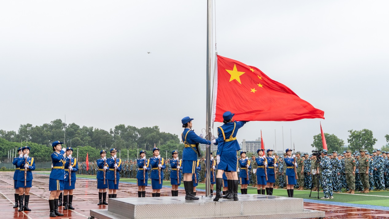 在庄严而雄壮的国歌声中,国旗缓缓上升,军训动员大会也正式拉开帷幕。罗辉和谭平在两校区宣布军训团成立并代表学校授军训团团旗。学生代表梁惠童、张书琪表示表示将以饱满的热情、高昂的斗志投入军事训练中,圆满完成此次军训任务。