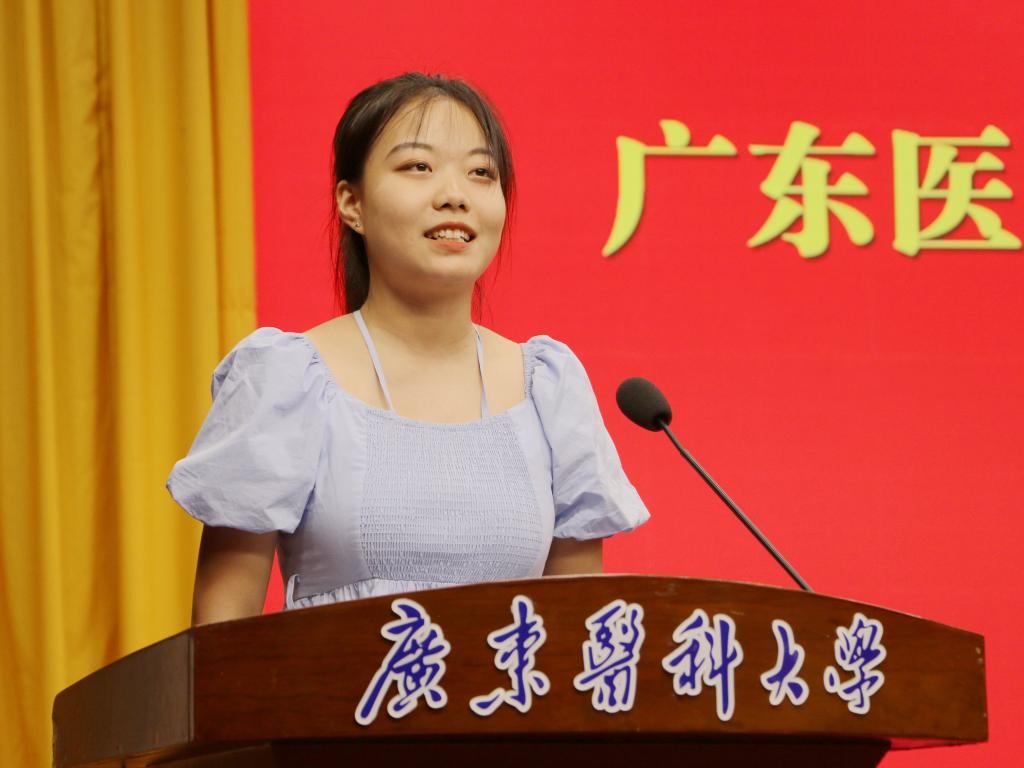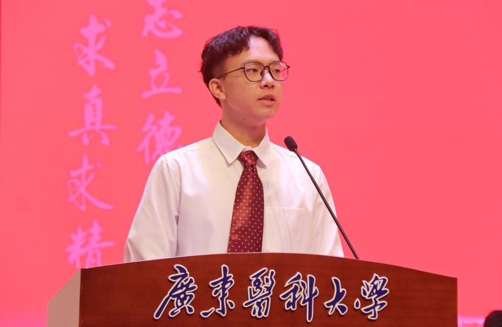 教师代表张晶晶发言表示,十几年来,庆幸自己一直是坚定追梦的“广东医人”,在这里从事科研、教学工作,不断成长,不断遇见更好的自己,从一名满腔热枕的青年教师成长为粤西首位广东省杰青、首位国家优青。他希望同学们要坚信能遇见更好的自己,在志存高远中升华自我;要努力遇见更好的自己,在深耕细作中完善自我;要不断遇见更好的自己,在知行合一中成就自我,努力成长为人民健康的守护者、健康中国的建设者、堪当民族复兴大任的建功者。
