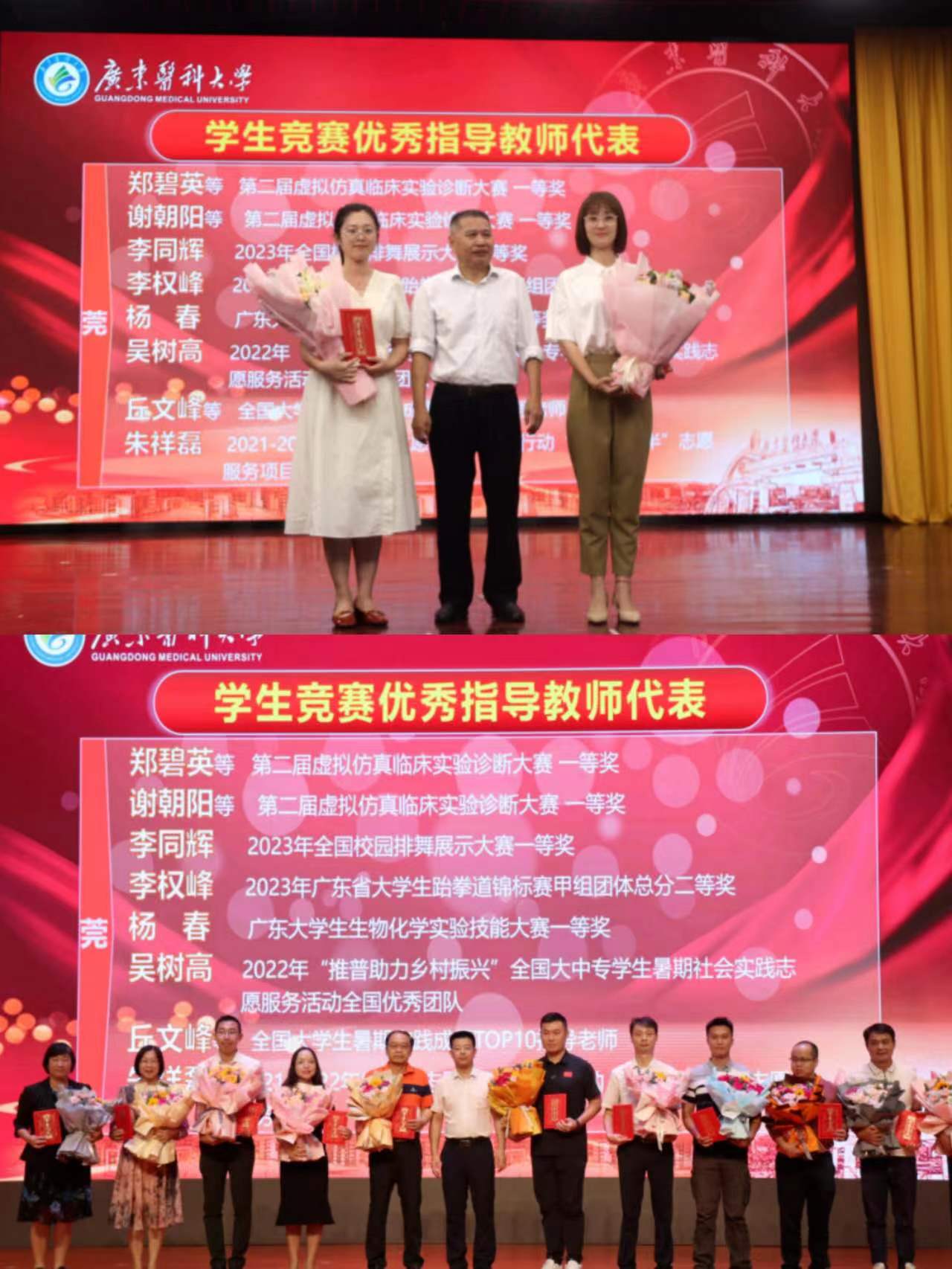 党委书记校长卢景辉,党委副书记、纪委书记、广东省监委驻新葡萄8883官网AMG监察专员、二级高级监察官向献兵分别为新葡萄8883官网AMG2022-2023年度优秀教师、优秀教育工作者代表颁奖。