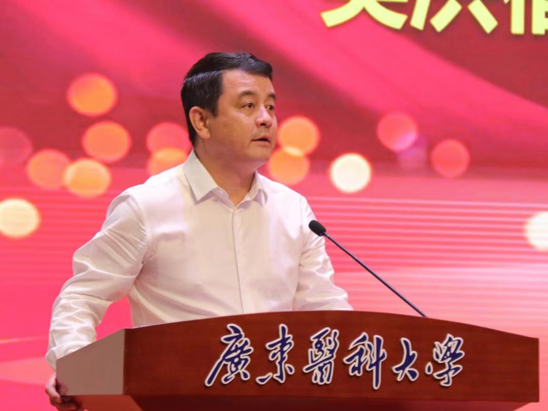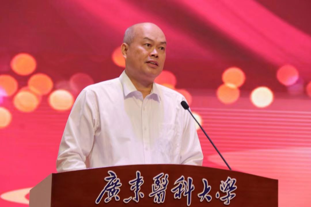 基础医学院生理教研室的吴洪福作为教师代表发言。他回忆起在广东医18年来,教书育人、帮助学生成长成才的经历,表达对领导、老师和学生的感恩之情。他表示,将要在广东医育人大舞台上,继续书写不负时代、不负人民,不负学校、不负学生的壮丽篇章,为打造中华民族“梦之队”作出更大贡献。