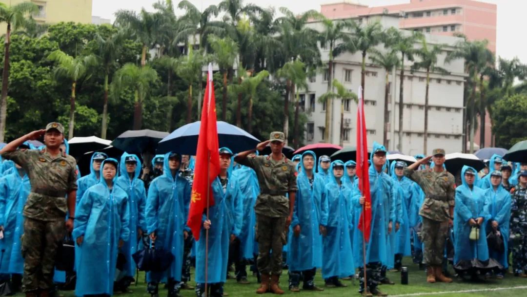 湛江市霞山区人民武装部副部长、湛江校区军训团团长罗建明,东莞市麻涌人民武装部教官、东莞校区军训团团长曾浩威发言。他们希望同学们在思想上重视军训,以军人的标准严格要求自己;严守纪律,坚决服从安排;发扬革命前辈吃苦耐劳精神,以高标准严要求的约束自己;尊重教官,服从教官的统一部署;要有集体荣誉感,加强团队意识。同时希望教官严格按照实训科学组训,严格遵守军训日程安排、纪律要求,以诚带兵。