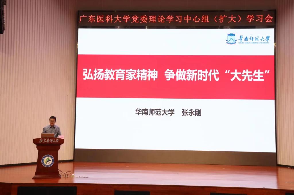 2023年9月22日上午,新葡萄8883官网AMG召开党委理论学习中心组(扩大)学习会,邀请了2023年高校网络教育名师、华南师范大学马克思主义学院张永刚教授作专题辅导报告。学校党委书记、校长卢景辉主持并领学了习近平总书记致信全国优秀教师代表精神。学习会在东莞校区图书馆报告厅和湛江校区新教学楼九楼报告厅同步举行。学校党委理论学习中心组成员,帮扶团队队长,中层干部,思政课教师,辅导员,各基层教学组织负责人参会。