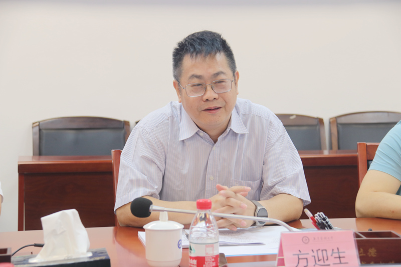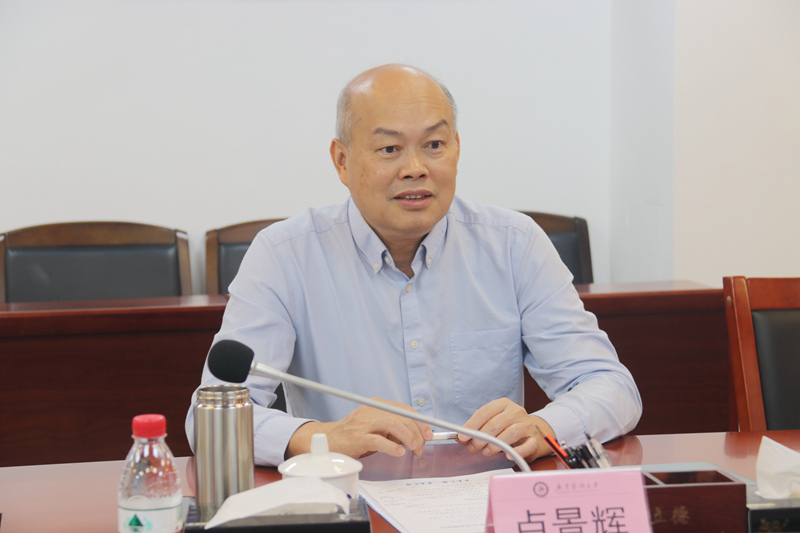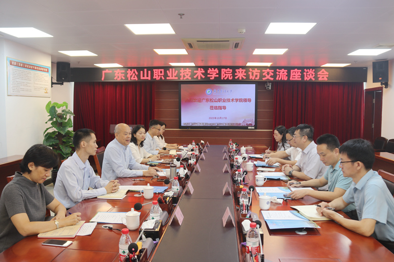 2023年10月17日上午广东松山职业技术学院党委书记方迎生一行来新葡萄开展调研交流,座谈交流会在湛江校区第一会议室召开。学校党委书记、校长卢景辉主持座谈。