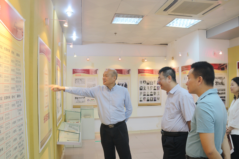 会前,来访一行先到校史馆参观,卢景辉对学校发展历史作了介绍。
