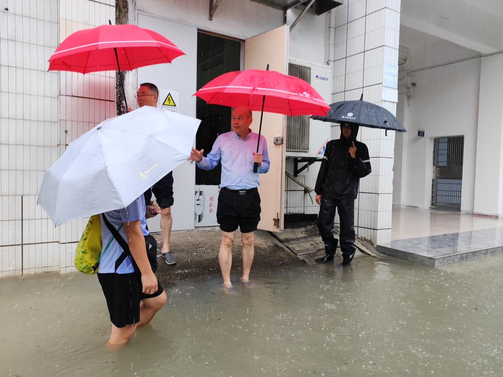 10月19日上午,受今年第16号台风“三巴”影响,气象部门对湛江市区发布暴雨红色预警,湛江市启动防汛Ⅳ级应急响应,学校党委书记、校长卢景辉在暴雨中带领相关部门人员对湛江校区进行安全检查,强调及时做好应急处置,确保校园的安全无忧。