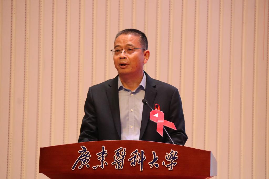 学校党委常委、副校长邝卫红表示,学校在长期实践中,形成了具有医科大学特色的防“艾”经验。积极落实有关部门要求,把防“艾”教育列入教学工作计划,做到与学生思政教育相结合,与学生日常行为规范相结合,与学校法治宣传教育相结合,与学生树立良好道德观念相结合,实施多形式全覆盖的防治宣传活动。邝卫红指出,传染病防治历史表明,战胜任何一种传染性疾病,消灭或控制传染源、切断传播途径、保护易感人群,三大环节缺一不可。在没有特效药物的今天,宣传艾滋病防控知识,保护易感人群,显得尤其重要。要树立“每个人都是自己健康第一责任人”的意识。