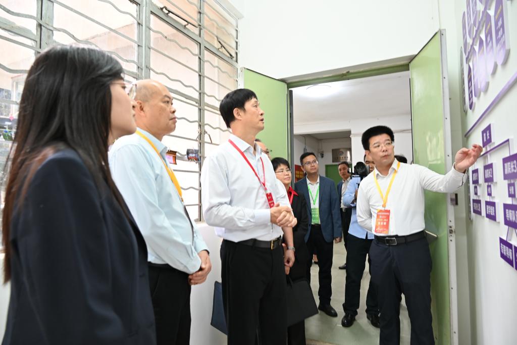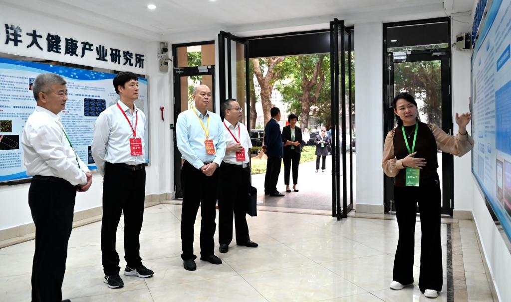 专家组集体考察了学校校史馆、生化实验室、立仁书院、海洋医药研究院、附属医院。校领导卢景辉、刘新光、曾志嵘,各职能部门主要负责人陪同考察。