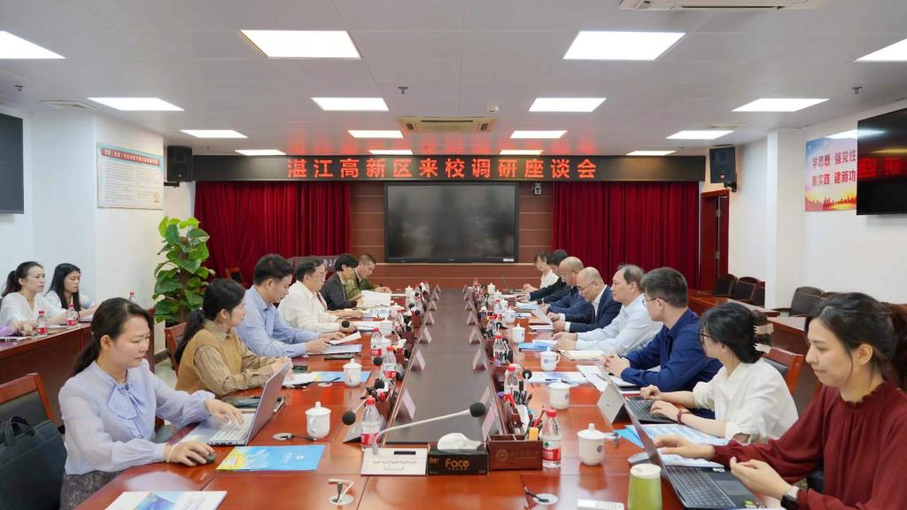 12月13日,湛江高新区党工委委员、管委会副主任陈俊优,中商产业研究院副院长吴新生等一行12人到湛江校区调研。学校党委常委、副校长刘新光主持调研座谈会并致欢迎辞。