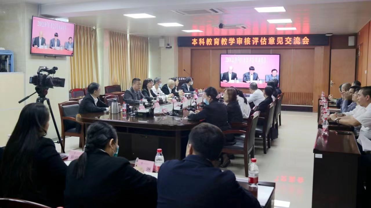 12月14日下午,新葡萄8883官网AMG本科教育教学审核评估意见交流会在湛江、东莞两校区同步举行。专家组组长、徐州医科大学原党委书记吴永平和专家组成员赵醒村、刁晓平、刘涛、徐霞、古广灵,广东省教育厅副厅长冯伟、高等教育处处长姜琳、高等教育处副处长吴华明、高等教育处一级主任科员张兵,全体校领导出席会议。吴永平主持会议。