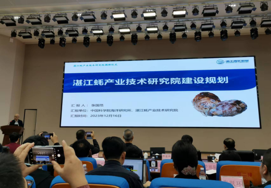 张国范院长在揭牌仪式中介绍了研究院建设规划,表示研究院接下来将围绕湛江生蚝产业发展,通过七个共建单位资源整合,按照“一只蚝一个产业”从种质创制、种苗繁育、模式创新、疫病防控监测预警、加工利用、牡蛎礁生态修复等方面建立全产业链,同时制定养殖标准,为生蚝产业的发展提供技术支撑,推动可共享研究成果在湛江落地结果,打造“湛江红蚝”等知名品牌。