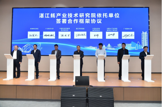 湛江蚝产业技术研究院依托单位签署了合作框架协议。李朋杰摄