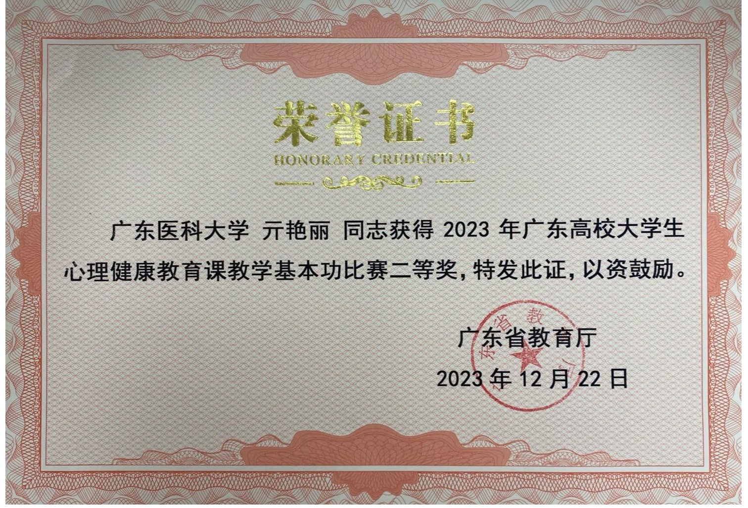 近日,2023年广东省高校大学生心理健康教育课教学基本功大赛决赛在广州中医药大学落下帷幕。经过片区入围赛、决赛,新葡萄学工部心理健康教育与咨询中心专任教师亓艳丽荣获决赛二等奖。