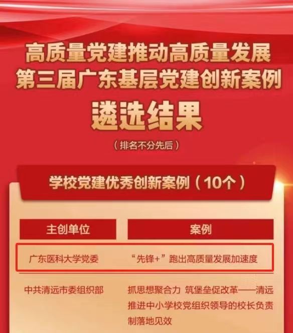 《“先锋+”跑出高质量发展加速度》案例在第三届广东基层党建创新案例遴选中荣获广东学校党建优秀创新案例