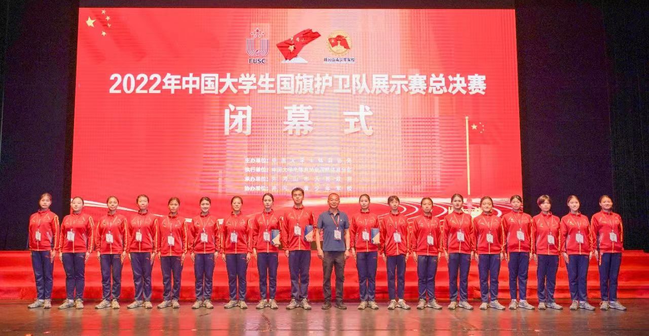 国旗护卫队在2023年中国大学生国旗护卫队展示赛总决赛中荣获团体总分、队列动作项目、升旗展示项目等所有项目第一名