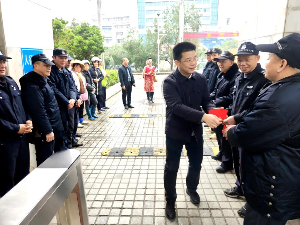 每到一处,校领导都与值班人员亲切交谈,聊家里老少,聊身体状态、聊新年愿望等。“祝大家在新的一年里阖家安康、心想事成!”校领导在两校区为值班人员送上美好祝愿。值班人员对学校的关心表示感谢,希望学校发展越来越快、越来越好!