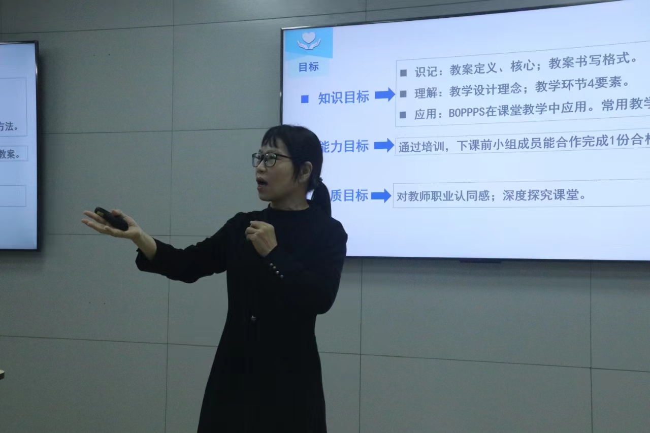 工作坊由护理学院徐红老师主讲,徐老师从教案的含义和重要性入手,介绍了教学环节要素,分析了知识目标、能力目标和素质目标的教学目标的含义、相互关系及书写要求。着重点介绍了教案格式与撰写注意事项,详细讲解了基本内容和课堂设计和时间分配以及重点、难点,分享了常用的教学方法。对教学内容、教学目标、教学步骤、教学方法、教学资源等如何进行具体设计和安排,使教学过程具有针对性、科学性和系统性,从而达到预期的教学目标。