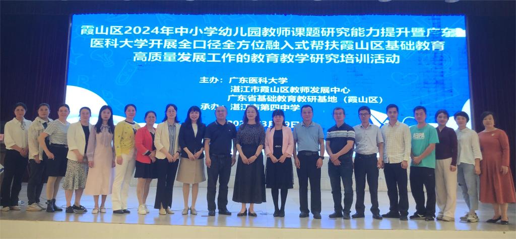 为了进一步贯彻落实2024年全省教育工作会议暨基础教育高质量发展推进会的精神和要求,提升基础教育教师教育教学研究能力,以教学研究促进学校教学效果提升,2024年3月29日,学校高等教育研究与教师发展中心在湛江市第四中学举办了霞山区基础教育教师教育教学研究能力提升讲座,该讲座是学校全口径全方位融入式帮扶霞山区基础教育高质量发展工作的活动之一。霞山区教师发展中心组织霞山区中小学骨干教师300余人参加了培训活动。