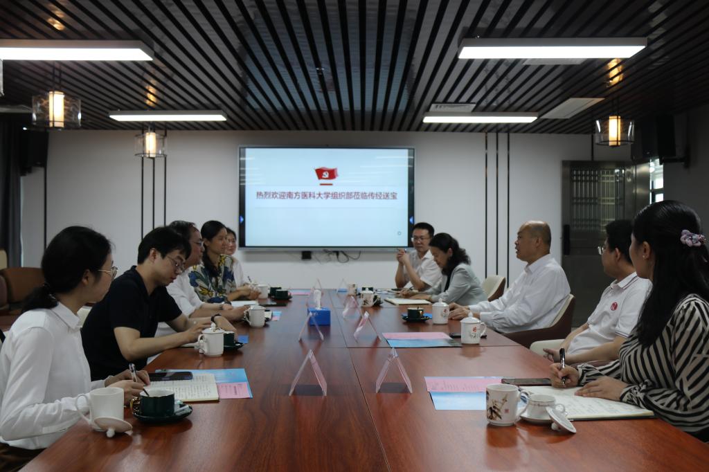4月3日上午,南方医科大学机关党委常务副书记兼党委组织部(统战部)副部长阮征宇一行5人到新葡萄座谈交流,学校党委书记、校长卢景辉,党委常委、副校长曾志嵘,党委常委、组织统战部部长谭平,南方医科大学帮扶团队、组织统战部全体干部参加。